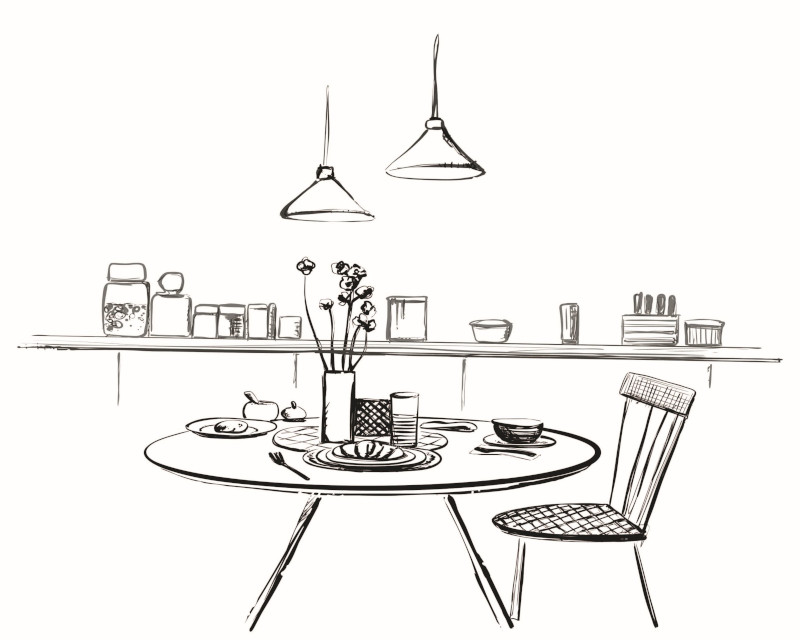 - Modelace stolu, import židle + kopírování, otáčení a umisťování objektů